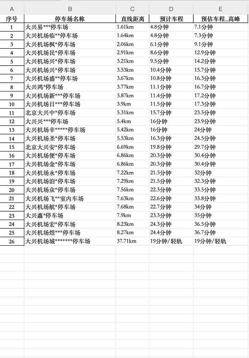大興機場周邊有26家停車場,距離航站樓2-40公里不等。